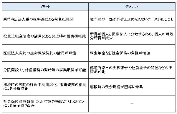 医療法人化をするか否かの判断においては、法人化のメリット・デメリットを確認した上で行うものと考える。法人化の主なメリット・デメリットは以下の通りである。