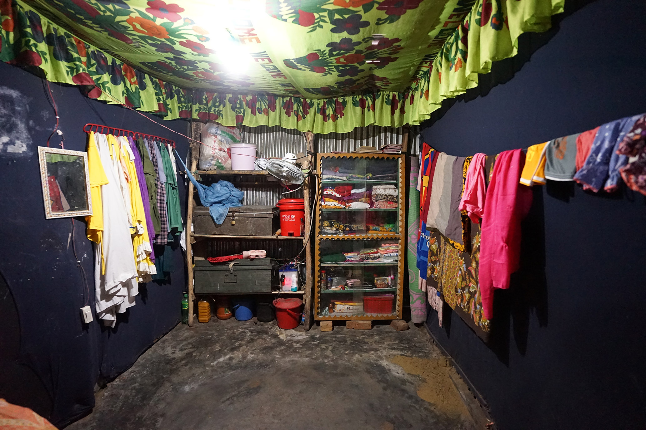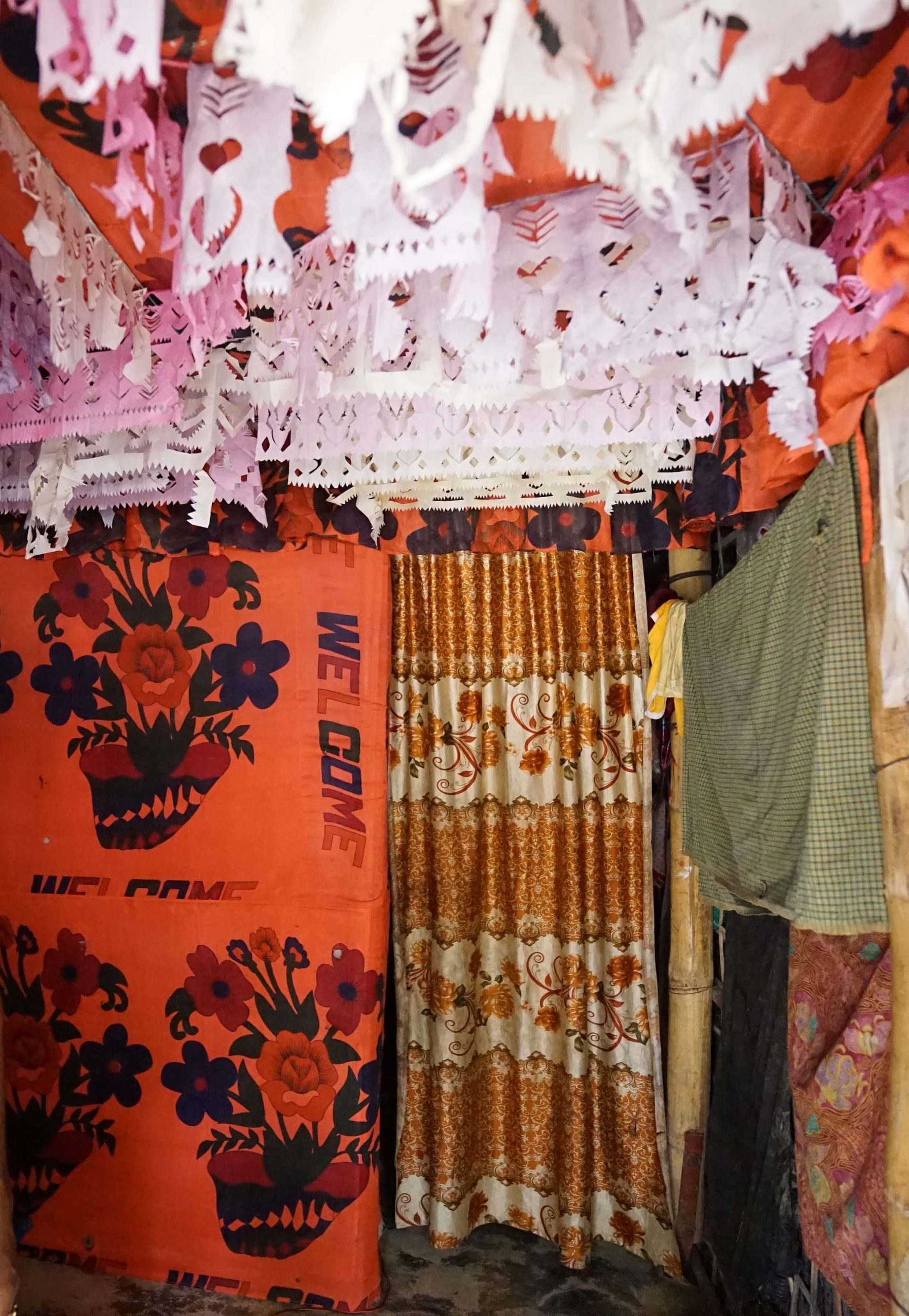 写真2.ロヒンギャの住人自身が設置した布天井