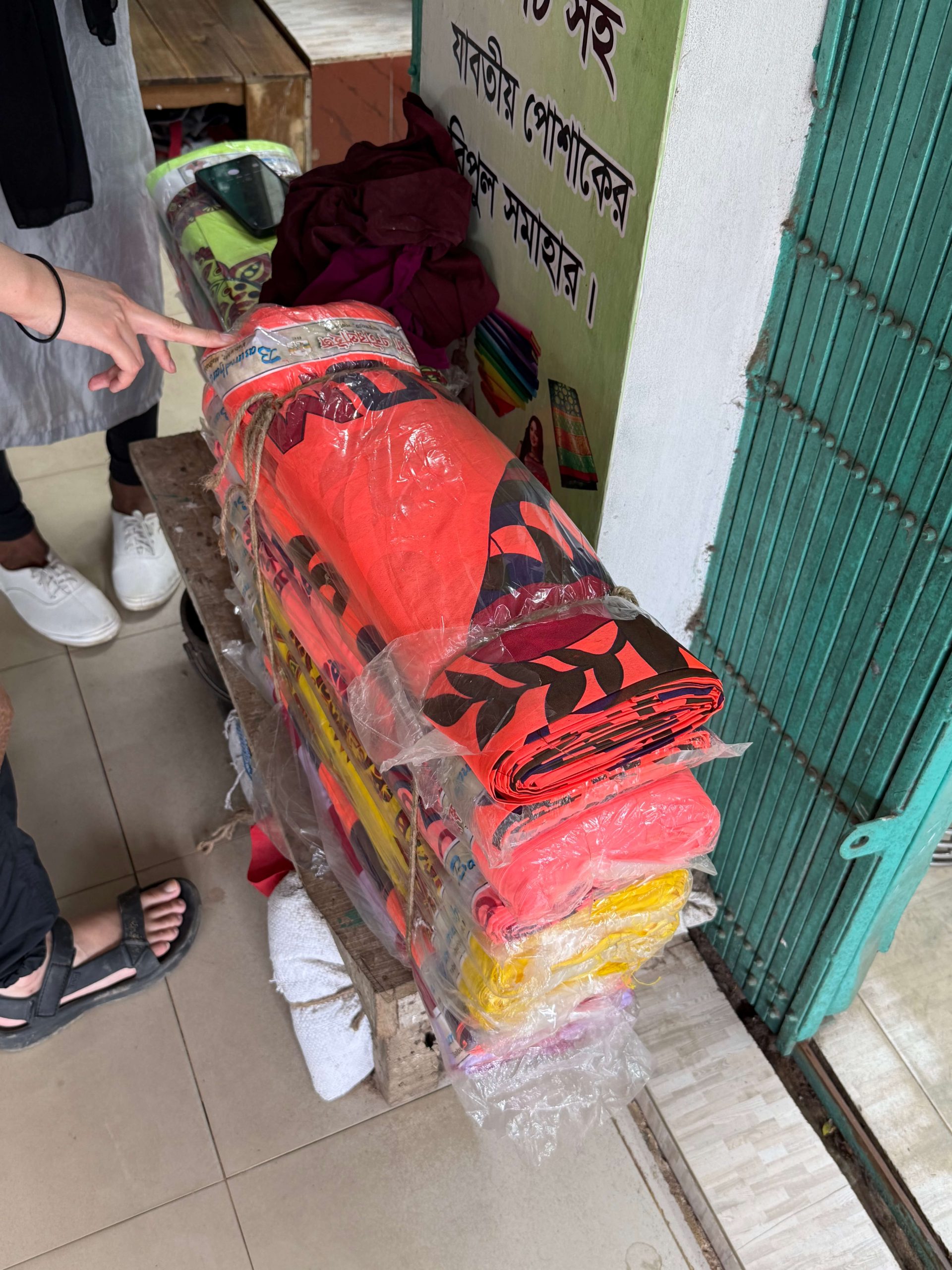 使われる布は、キャンプを出て、すぐのところにあるホストコミュニティ側の市場で購入される。キャンプ内外の行き来は特定の出入口で管理されることになっているが、住民は破れたフェンスから割と自由に出入りしている。
